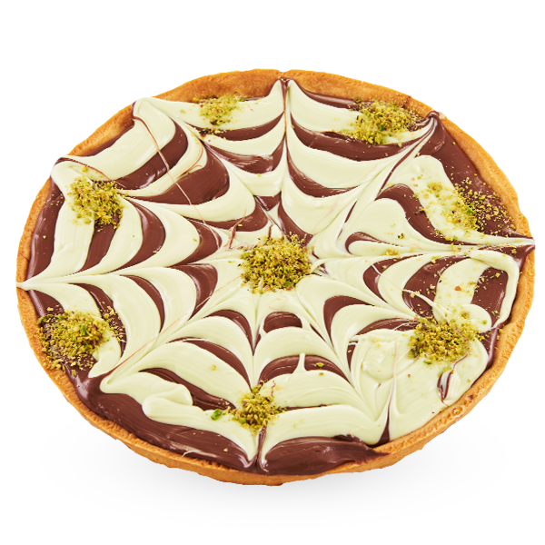 Crostata in un abbraccio tra pistacchio e cioccolato.