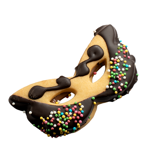 Invitanti e allegre mascherine di pasta frolla farcite al cioccolato.